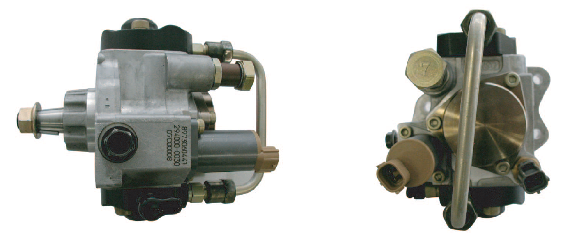 • Топливный насос высокого давления состоит из секции высокого давления (эксцентриковый кулачок, кольцевой кулачок, два плунжера), SCV (клапан управления всасыванием), датчика температуры топлива (если оборудован) и подающего насоса (трохоидного типа) и приводится в действие при передаточном числе 1/1 или 1/2 оборота двигателя.