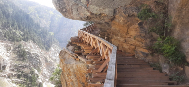 Скажите честно: «Вы бы прогулялись по узкой извилистой деревянной дорожке с хлипкими перилами, возрастом свыше 150 лет, которая ненадёжно прикреплена к отвесной скале на высоте 3352 метра»?
