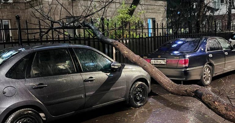 В Москве прошел обещанный пятибалльный шторм — на город обрушилось более 40% месячной нормы осадков. Непогода нанесла серьезный ущерб: повалены деревья, повреждены машины, есть пострадавшие.
