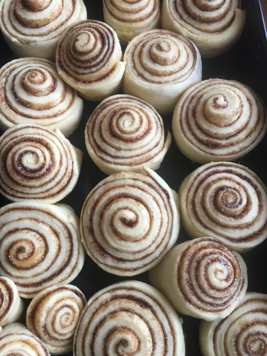 Продукты: 🥚 1 яйцо 20 гр. брикетных дрожжей Ванилин 1/2 ч.л. Мука 540 гр. 🥛Молоко 330 мл. 🧈 Масло сливочное 120 гр. 🧂 Соль 2/3 ч.л. Корица 4 ст. л 🧈 Сыр сливочный плавленный 230 гр. Сахарная пудра 60 гр. 🍋 Лимонный сок 1 ст.л. Сахарный песок 260 гр. Продукты подготовили можно приступать к волшебству 😊 Берем теплое молоко 280 мл, растворяем немного сахара 1 ч.л., и дрожжи. Перемешать и оставить на 10 минут, как появится пена значит наши дрожжи начали работать. Взбиваем яйцо, добавляем соль, ванилин, 60 гр. растопленного сливочного масла, 80 гр. сахара. Просеиваем муку и начинаем замешивать тесто как только оно начнет отставать от рук прекращаем мешать. Оставим тесто подходить на 1 час, потом его опустим и оставим еще на 30 минут. Спустя 30 минут, раскатаем наше тесто в пласт толщиной 6-7 мм. Раскатанный пласт смазываем 60 гр. размягченного сливочного масла, присыпаем смесью из 4 ст. л. корицы и 180 гр. сахара. Плотно сворачиваем в рулет. Режем на кусочки 5-6 см.