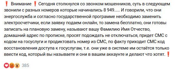 Я ранее не знал, что за код такой. Подумал, что что-то важное и взял трубку. На той стороне человек представился, назвал мое ФИО, номер телефона и сказал, что действие номера заканчивается, надо продлить. В ответ на это я сказал, что подойду в офис МГТС и все решу. Но они были готовы к такому ответу и сразу выстреливают: "Не получится, т.к. мы вам неоднократно высылали пуш-уведомления о сроке вашего номера, теперь только через абонента по телефону". Ну а дальше должна быть стандартная схема по передаче кода, который передавать нельзя и кража средств. В моем случае до этого не дошло, но есть же и другие: к примеру, бабушки и дедушки. Они в опасности.