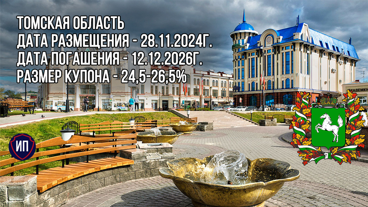 Новые реалии диктуют новые условия заимствования на фондовом рынке. Из регионов нашей большой страны Томская область планирует установить новый годовой рекорд среди субъектов федерации по доходности выпуска облигаций - до 26,5%. Давайте разбираться. 👀Что там по выпуску? 📌Дата размещения - 28.11.2024г. 📌Дата погашения - 12.12.2026г. - выпуск всего лишь на два года, короче остальных субфедеральных размещений. 📌Объем эмиссии - 1 200 000 000 рублей. На данный момент облигационные займы Томска составляют лишь 500 млн. рублей. 💰Размер купона - фиксированный на весь период размещения. Ориентир первого купона установлен в диапазоне от 24,5 до 26,5 процентов. Отличная золотая доходность для облигаций с минимальными рисками. Скорее всего по максимальному значению диапазона размещаться не будут, но на медианную доходность рассчитывать вполне можно. Хотя даже нижняя граница выглядит вполне прилично. 📌Выплата купонов - ежемесячно. Жирный плюс к высокой доходности. 📌По выпуску не предусмотре