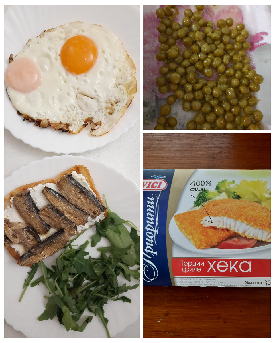 #Завтрак – кофе с молоком. Два яйца в виде глазуньи. Руккола. Хлеб на гриле, творожный сыр и шпроты. Ооо, это шикарное сочетание! #Обед – на обед обжарила вот такой хек в панировке за 203р. Заказывала в Ленте. Цена была довольно приемлемая, плюс там акции на кэшбек у Тинькофф иногда бывают. Состав терпимый. Сам хек. И панировка из муки, крахмала, специй. Масло только соевое. Вот это прям не очень компонент. Но его и не особо много в составе. На вкус масло не повлияло в худшую сторону. В упаковке 4 квадратика. Жаль, я не сфотографировала. Заранее размораживать не нужно. Обжарила на сухой сковороде по минуты 3-4 с каждой стороны. На небольшом огне. Панировки много, но из-за этого рыба внутри остается сочной! Рыба тоже чувствуется. Но панировки прям много. Это скорее в формате «ем панировку с рыбой», чем «рыбу в панировке». Но мне все равно понравился такой полуфабрикат. Когда нужно быстро приготовить! Раньше у меня на такой случай были Чевапчичи или Кебабчичи от Мираторг. Но эти хрящи,