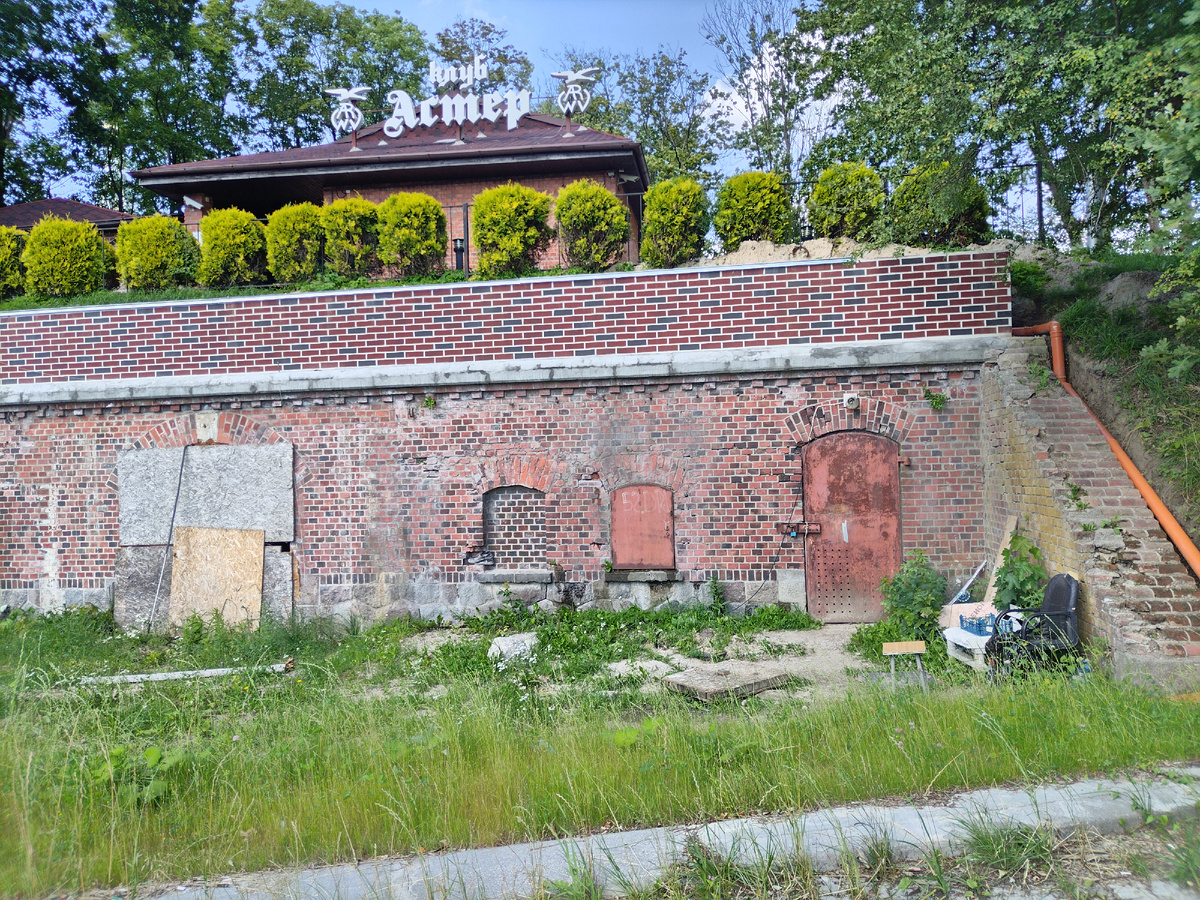 Литовский Вал, этой улице я посвятила полтора дня, это точно. Как прусский новобранец я облазила все, что было для меня доступно. Это я сейчас могу выстроить событийный ряд, в Калининграде было все как обычно. Ага, похоже это был водяной ров, а по рву такие интересные сооружения, пойду посмотрю. Это, как мне намного позже рассказала сотрудница музея начало крепостных сооружений к королевским воротам. Ребята, крепостные, от слова-крепость. Но все сохранившиеся здания военного значения, казармы, проданы в частные руки, по словам музейного работника, смотреть кроме королевских ворот не чего. Я найду что посмотреть и вам показать. Пластиковые окна вверху и сохранившиеся архитектура. В самом здании магазины. Я покажу вам поверху, что сохранилось. Ворота, бойницы и уключины, не знаю как правильно назвать углубление в столбе ворот. Это одни из ворот в крепость. Первое фото -это вход в подземные переходы, по Литовскому Валу идти далеко, прям несколько остановок. Идет реставрация, а может пр