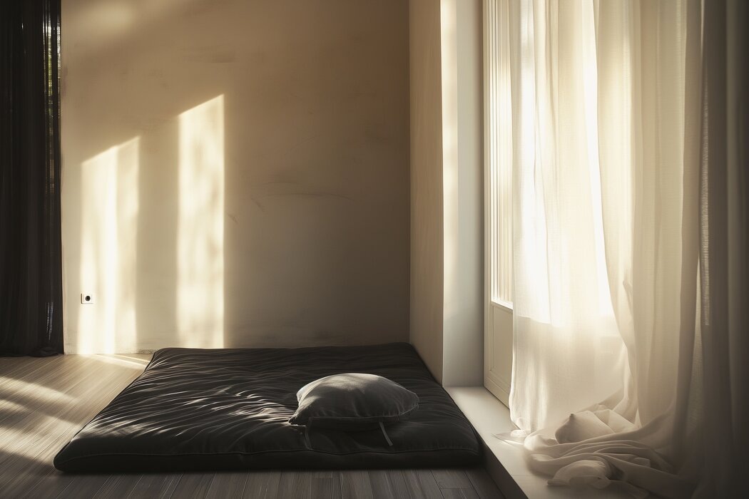 Кстати, о традициях. В японской культуре принято спать на футоне. Настоящий японский футон — это не то мягкое раскладное недоразумение из IKEA (простите, что я о больном). На самом деле, это тонкий матрас, который стелется на татами — плетёные соломенные маты. Днём футон убирается в шкаф, физически освобождая пространство и символически разграничивая периоды бодрствования и сна.