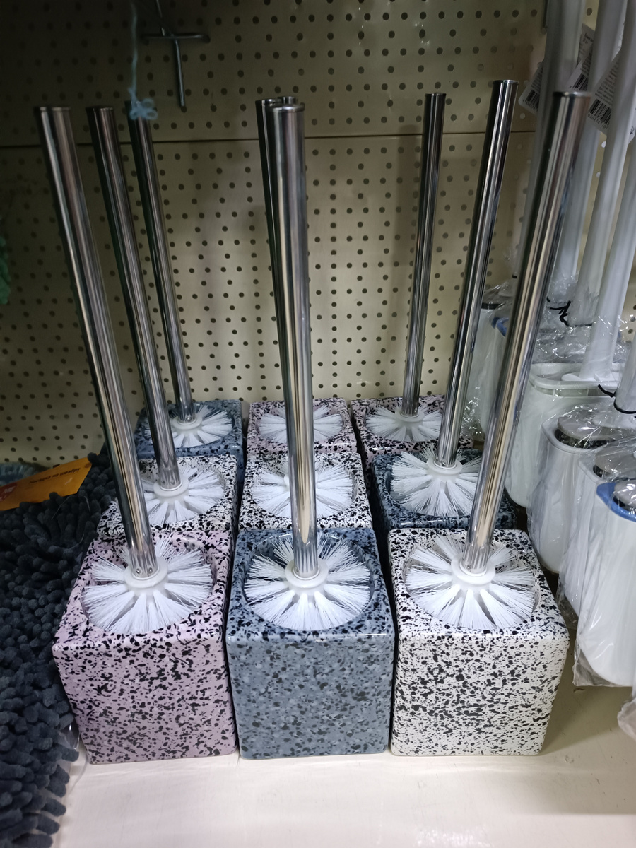 Почему пишу на вес и на ощупь? - потому, что в составке ни керамики нет, ничего подобного... Только полиэстер, полипропилен и нержавейка. Мне кажется, они написали состав щетки, но забыли написать материал стаканчика или емкости. А она, мне кажется, что именно из керамики. Главное в тяжелых таких штучках для меня - это то, что не опрокинется случайно, окак иногда случается с легкими пластиковыми напольными стаканчиками. Эти очень устойчивы. И плюс ко всему не боятся всяких кислот, думаю. Дезинфицировать можно не бояться.
