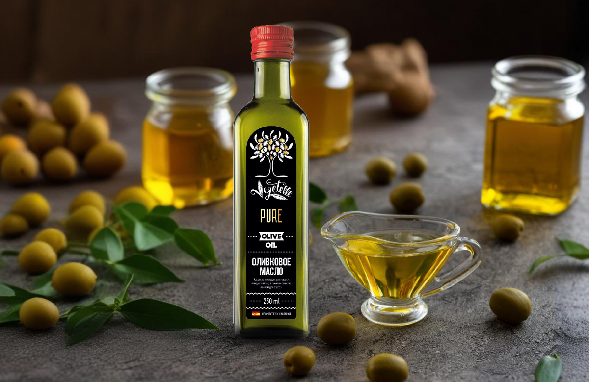 Оливковое масло Pure имеет нежный вкус, приятный, ненавязчивый аромат, прозрачность и цвет. В нём отсутствует горечь.