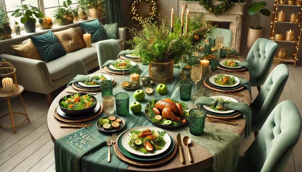 2025 год пройдет под знаком Зеленой Деревянной Змеи – символа мудрости, гармонии и элегантности. Чтобы новогодний праздник принес удачу и процветание, важно не только красиво накрыть стол, но и продумать каждое блюдо в соответствии с предпочтениями этой изысканной покровительницы года. Что обязательно должно быть на столе? Зеленая Змея ценит натуральные продукты и блюда, подчеркивающие изящество. Вот что станет идеальным выбором для праздничного ужина: Блюда из кролика или птицы – запеченная курица, утка или индейка станут отличным решением. Мясо должно быть нежным и с минимальным количеством специй. Овощные салаты – свежие листья салата, руккола, шпинат и другая зелень создадут гармонию на вашем столе. Закуски из бобовых – например, паштет из чечевицы или нутовые котлеты. Такие блюда подчеркнут любовь Змеи к простоте и питательности. Рыбные деликатесы – легкие и ненавязчивые блюда из рыбы станут приятным дополнением. Оформление стола: гармония цвета и деталей Зеленая Деревянная Змея п