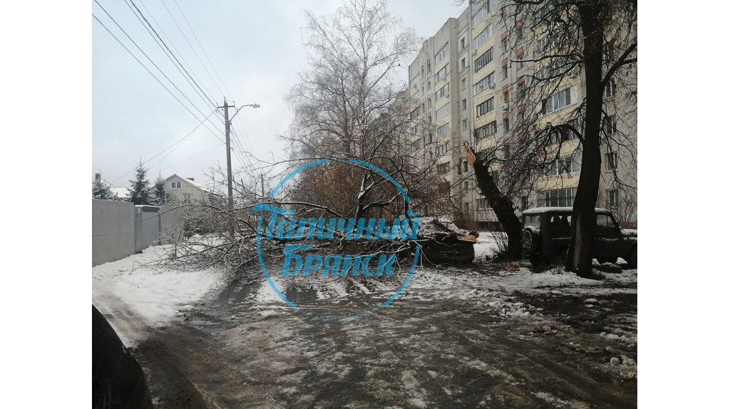 В Брянске упавшие из-за сильного ветра и мокрого снега деревья повредили 13 машин