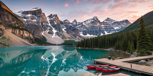 Представьте себе место, где небо встречается с землей в объятиях величественных горных пиков, а кристально чистая вода переливается всеми оттенками бирюзы, словно драгоценный камень в природной оправе. Место, где каждый восход солнца превращает пейзаж в живую картину, достойную кисти величайших художников. Это озеро Морейн - одно из самых фотографируемых и завораживающих мест на нашей планете.