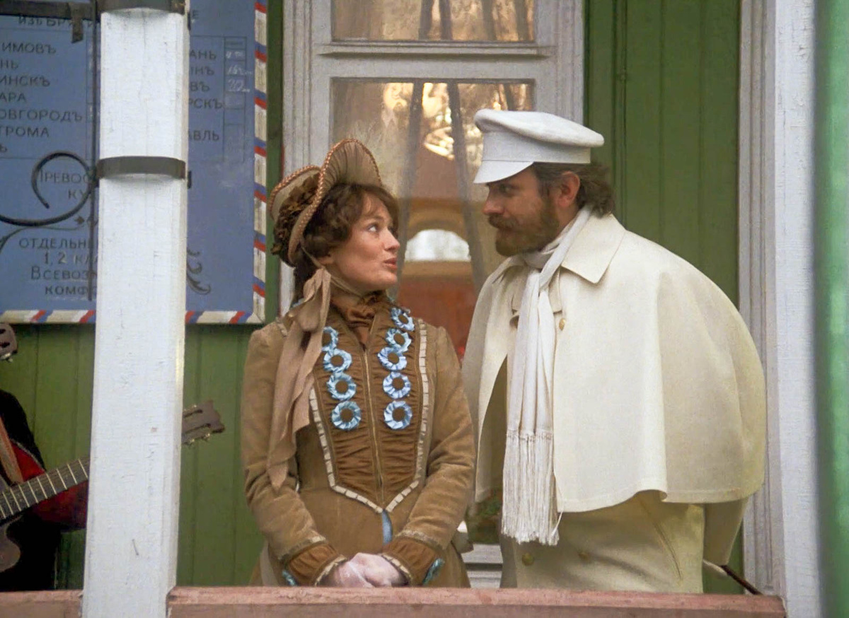 А вы заметили, что эпизод с Паратовым и лошадью добавлен в фильм совсем не случайно? И не только чтобы показать зрителям гарцеватый проезд Никиты Михалкова на пристань по узкому мостику. Кстати, конь очень боялся, поладить с животным удалось не сразу. Здесь главное другое: Сергей Сергеич опоздал на прощание с Ольгой Дмитриевной. Да был ли он вообще на свадьбе? Что-то сомневаюсь. Между прочим, на день рождения Ларисы Паратов тоже вовремя не явился. Уже по этим двум эпизодам можно сделать железный вывод: судовладелец был крайне необязательный человек. Давайте отвлечемся от гипнотической личности и привлекательной внешности Сергея Сергеевича и постараемся разобраться: а тогда кто-нибудь понимал его демоническую сущность? Лариса - с ней все понятно. Недалекая женщина, ослепленная непонятной страстью. Кнуров и Вожеватов, возможно, догадывались о скверном характере Паратова, но им было все равно. Харита Игнатьевна также не понимала, насколько страшного человека принимает в своем доме. Женщин
