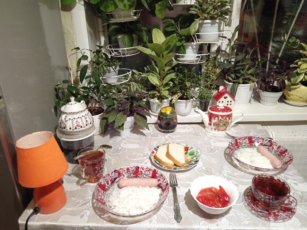 7:20. Пока чайник угрюмо напоминал о своём присутствии, сварила длиннозерный рис.