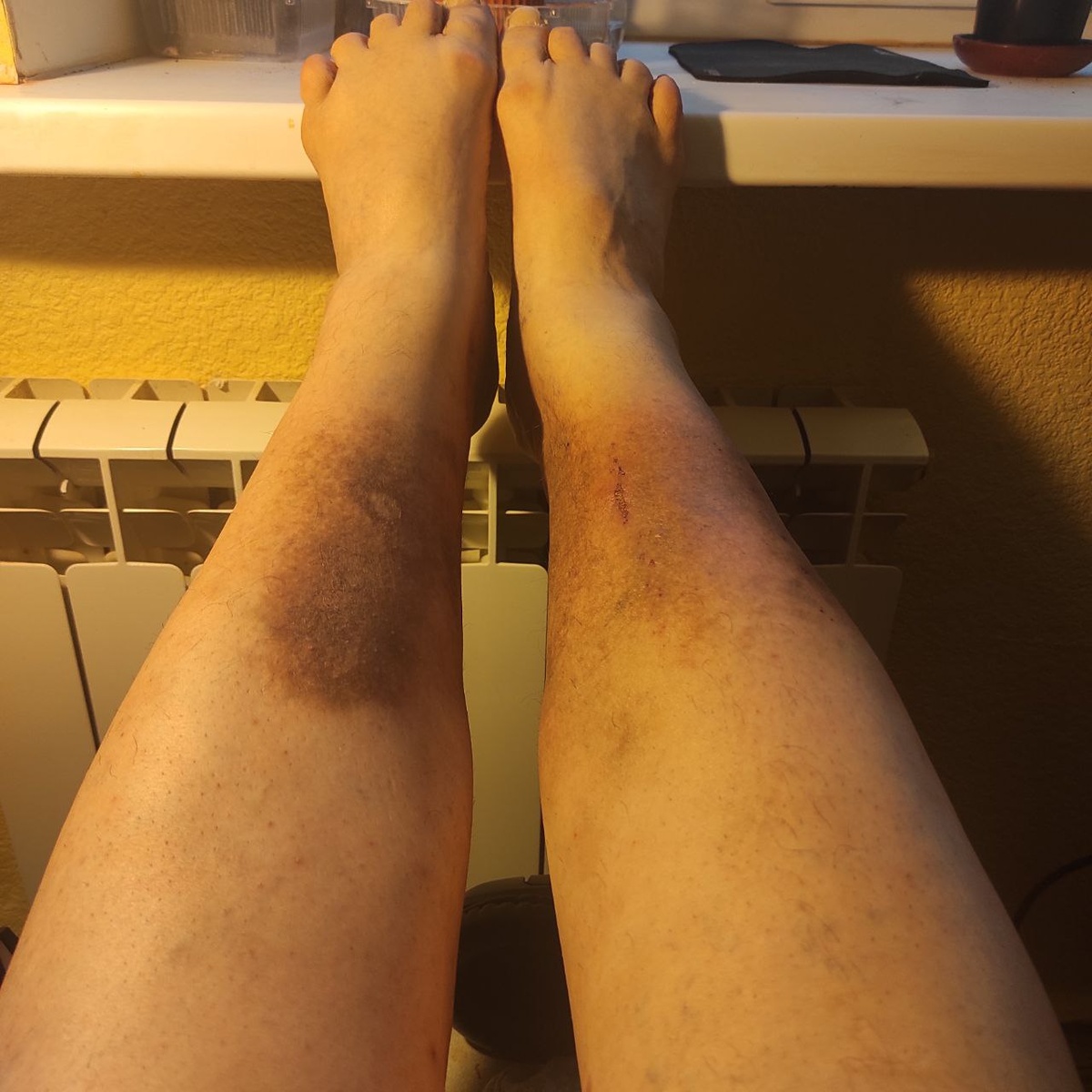 Не поленюсь даже еще раз выставить свою ужасную фотографию. Вот так выглядят мои ноги на данный момент. Я похудела. Нормально передвигаюсь. Не испытываю дискомфорта. Но вред, который я себе нанесла, устранить уже нельзя. Это не исправить. Во всяком случае пока мне не предлагают никакого работающего метода. Предлагают радоваться, что в принципе живая. А внешние минусы ерунда по сравнению с тем, что, как оказалось, могло случиться в тот момент. Я просто об этом не знала.