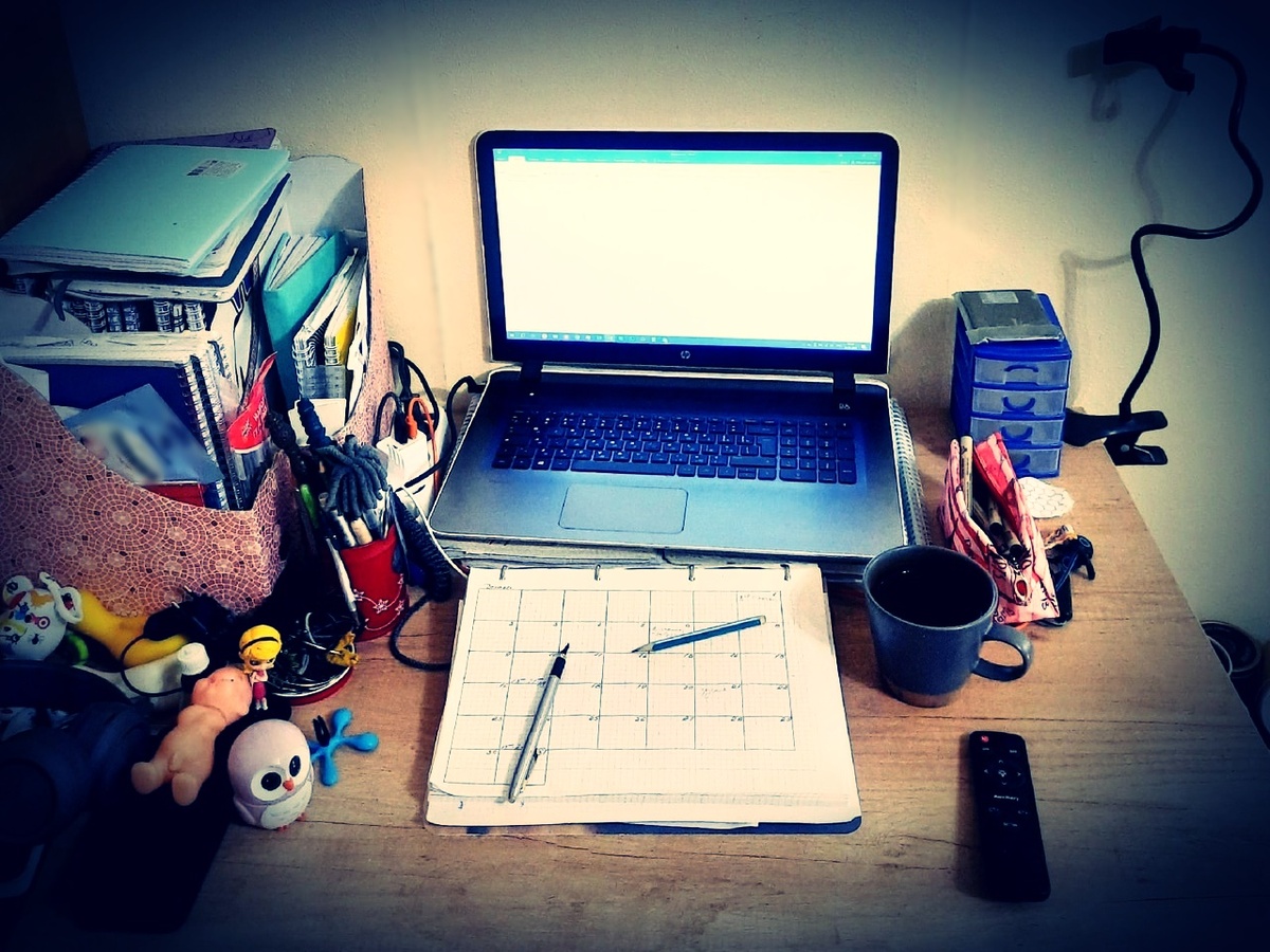 Фоточку с неидеальным рабочим столом прилагаю. Сначала хотела найти покрасивее, а потом решила, что лучше настоящую.
