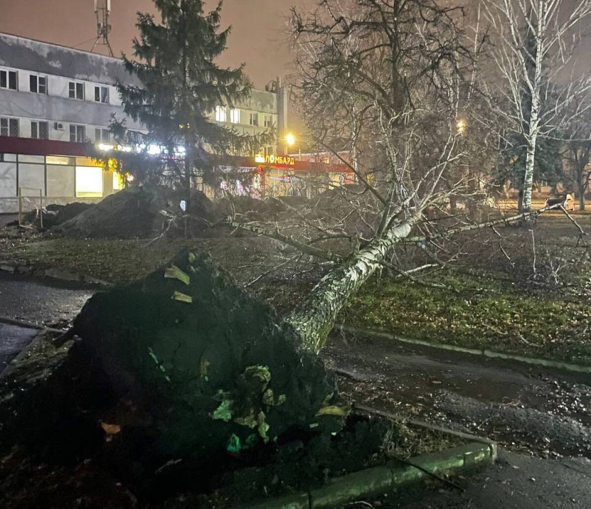 Курские службы после вчерашней непогоды убирают поваленные деревья, ставят на место остановки