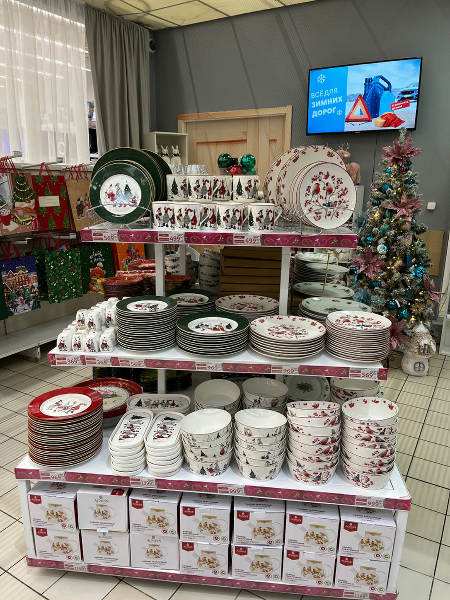 Всем привет, мои дорогие! 😍 Сегодня будет настоящий новогодний марафон в стиле «фото-шоппинг»! Я отправилась в магазин Ашан, чтобы рассмотреть всю эту волшебную коллекцию к Новому году! 🎅🛒 Готовьтесь, потому что товаров там просто море – кажется, в этом году они решили удивить нас всем, чем только можно! ✨ Не буду долго затягивать свое вступление, начинаю прям с обзора праздничной посуды. Коллекция тарелок из фарфора с рисунком снегирей на ветке, цена правда не бюджетная, за тарелку 20 см. 569- 😬 И блюдо диаметром 27 см., за 969- Коллекция с рисунком «Гуси». Материал фарфор, цена такая же: 569 и 969- Подставка под зубочистки и емкость для специй, за 369- Овальное блюдо для подачи закусок, НО цена больше тысячи рублей представляете 😵 Коллекция фарфоровой посуды с рисунком шишек и ели, кружка объемом 300 мл., за 279- Блюдо и тарелки Салатник объемом 400 мл., за 389- Еще посуда 😍 – та самая стойка, от которой я просто в восторге! 🙈 Тут и тарелки, и чашки – все такое яркое и праз