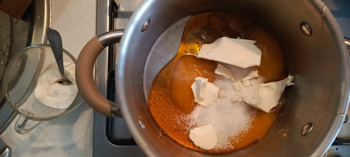 Здравствуйте. Рецепт попался в телегамм канале, подкупил простотой приготовления коржей. Повторила, понравился очень и очень. Крем я только я использовала "свой", проверенный, очень нежный и сливочный. Тесто готовится на печке. 200 г мёда в кастрюльку + 30 г сахара и 50 г сливочного масла растапливаю на минимальном огне, перемешивая. А ещё в отдельной чашке я заранее подготовила сметану: 80 г смешала с 1,5 ч. л. соды. Добавляю сметану к массе в кастрюльке. Перемешиваю и варю полторы-две минуты постоянно перемешивая, должен получиться золотистый цвет и воздушная пена. Снимаю кастрюлю с огня, немного остужаю (вынесла на холодный балкон или можно поставить в мойку с холодной водой). Добавляю 150 г муки. Перемешиваю и разбиваю яйцо, сыплю щепотку соли и снова мешаю. Стандартный противень от духовки закрываю силиконизированной бумагой для выпечки делая такие бортики. Всё тесто разравниваю по поверхности бумаги и выпекаю при 170 градусах 20 минут. А пока готовлю обалденный крем. Вот продукты
