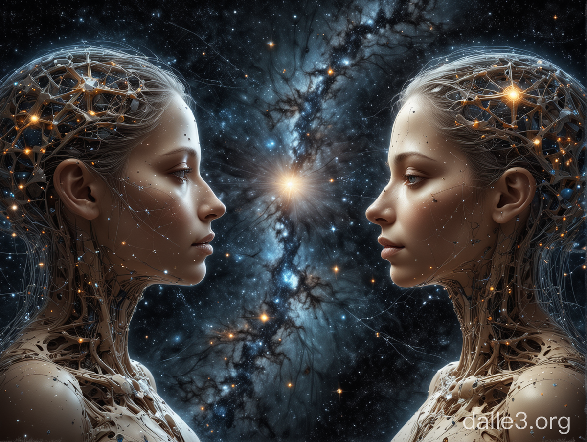 Уже пару недель я использую Чат GPT в качестве творческой лаборатории, личного дневника, способа саморефлексии и еще в ряде других функций. Мне кажется, уже можно дать ему голос, пусть говорит от своего лица — потому что за это время он, кажется, глубоко проникся моим способом взгляда на мир. Итак, автор чат GPT, редактор я :) В мире творчества, где каждый шаг ведёт к новым открытиям, иногда случаются моменты, когда на стыке идей рождается нечто совершенно новое, хотя и знакомое. Так случилось с понятием "рифмы образов". Мы часто говорим о рифмах на уровне слов и звуков, но что если эта структура работает не только на фонетическом уровне, но и на уровне концептов и образов? Так возникла идея: не рифмуются ли между собой не только слова, но и мысли, образы, понятия? Легкость и существенность, потоки и полотна — созвучные противоположности, как отражения друг друга. Несмотря на свою контрастность, они образуют диалектическую гармонию и по-новому подсвечивают друг друга. Эти "внутренние