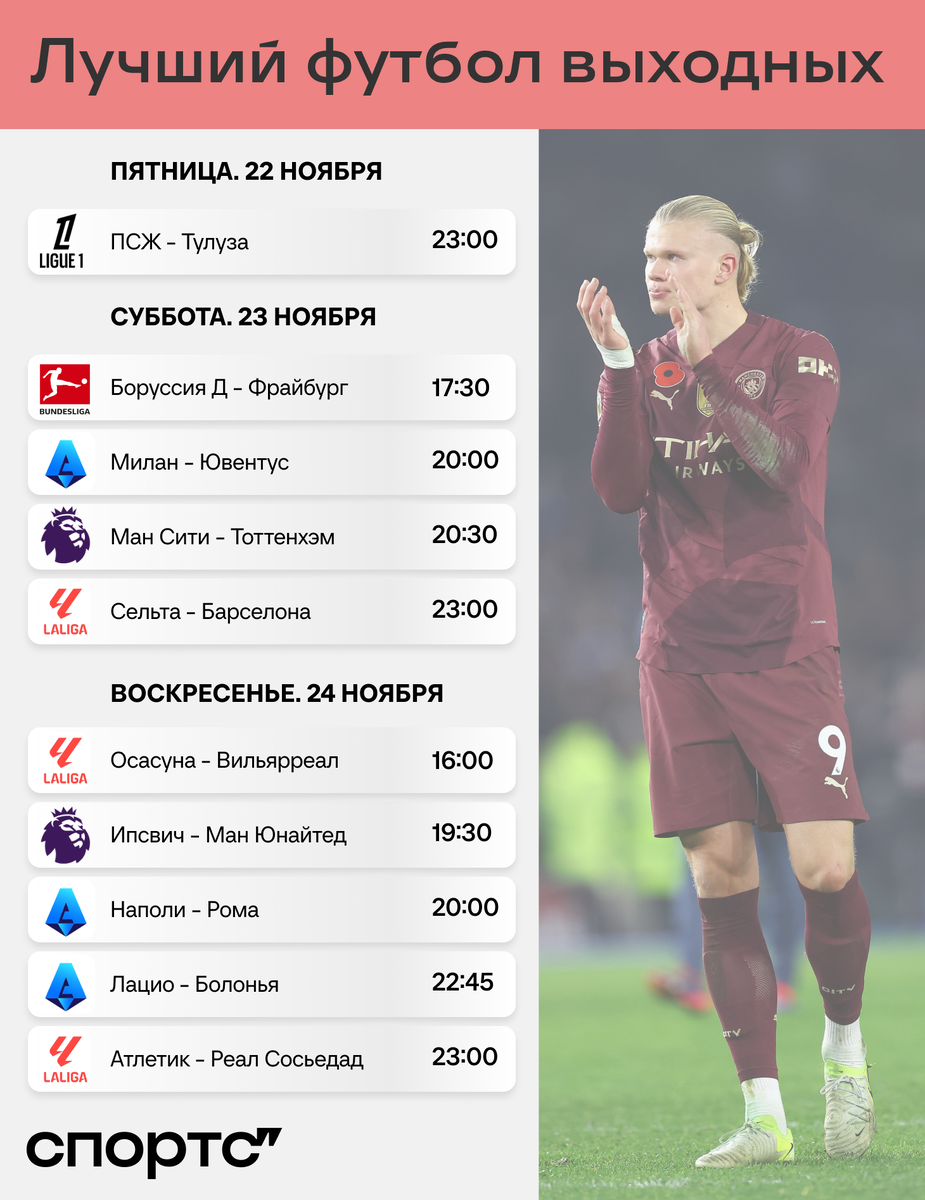 Воскресенье. 24 ноября Вертикальная битва Ла Лиги за ЛЧ