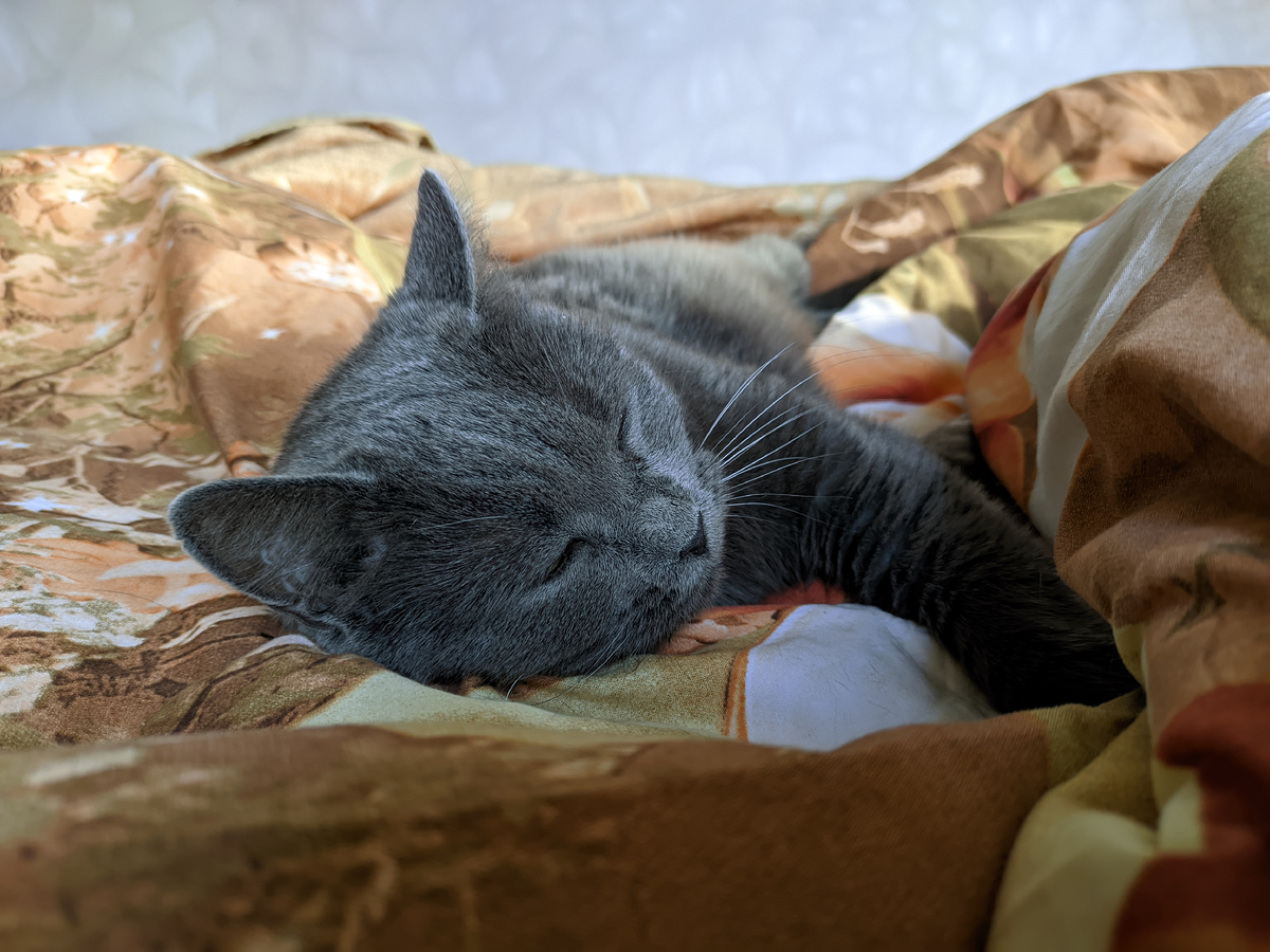 Утром глаза как обычно открываю, а рядом уже традиционно наша серая охотница. Лежит, спит, от ночной охоты отдыхает.