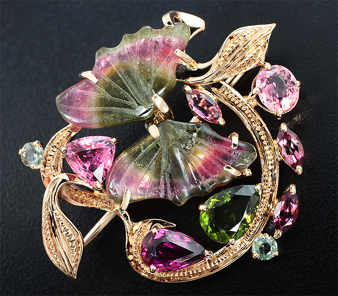 Во-первых, натуральный турмалин обладает характерной текстурой и многослойной структурой, которая проявляется в виде цветных полосок. Эти полоски, переходящие от одного оттенка к другому, создают уникальную игру цвета, а искусственные камни часто имеют однородный цвет без таких вариаций.