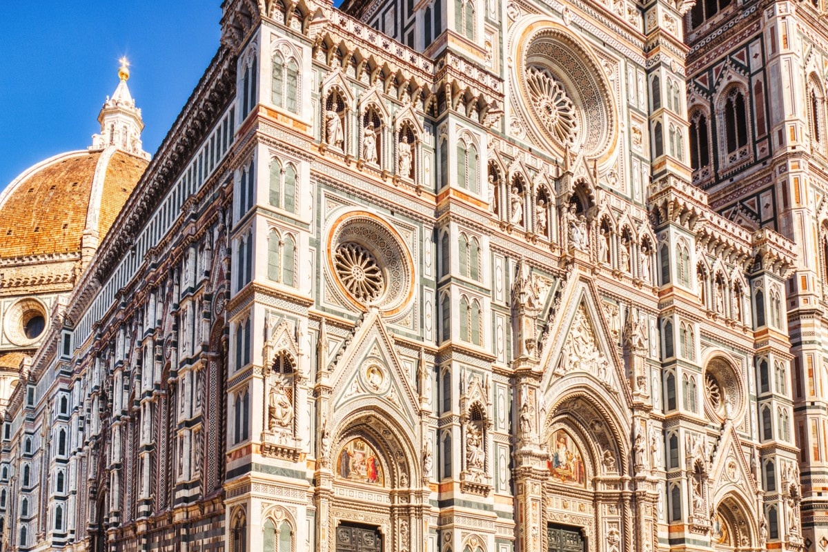 Прогулка продолжается по улице Виа дей Калзайуоли, соединяющей Пьяцца делла Синьория с Пьяцца дель Дуомо. Здесь расположены Кафедральный собор Санта-Мария-дель-Фиоре, колокольня Джотто и баптистерий, чья архитектура величественна и впечатляюща. Панорамный вид с купола Брунеллески оставляет неизгладимое впечатление и захватывает дух. Пройдите через Понте Веккьо, мост-луноход, где торговцы ювелирными изделиями работают с эпохи Средневековья и веками.