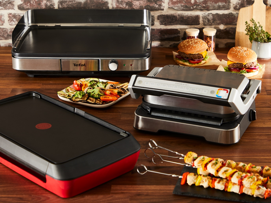В линейке грилей Tefal есть особая модель — Tefal Optigrill 4 in 1 GC774D30, настоящий кухонный трансформер с четырьмя режимами работы. Можно использовать его как умный гриль для идеальных стейков, разложить на 180 градусов для приготовления большой порции барбекю или превратить в духовку с помощью специальной насадки для запекания. А режим «Комплексное блюдо» позволит одновременно готовить основное блюдо и гарнир. Например, пока на одной стороне гриля жарится стейк или рыба, на другой в это же время запекаются овощи.