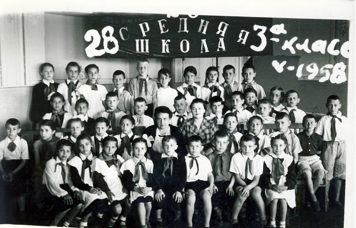 Самая любимая учительница нашего класса, да и всей школе, учительница математики Наталья Васильевна Черникова, до войны преподавала в этой же школе математику и физику, воевала снайпером и пулемётчицей. Очень строгая, до сих пор помню её лицо и голос. Историю преподавал тоже любимый учитель, старенький горбатый поляк Семён Николаевич Шершевский, до войны работал археологом. Слеповатый, глуховатый и очень рассеянный человек, но большой знаток всяких битв. Естественно, при таких качествах, оказался центром наших развлечений, когда становится скучно. Дело в том, что в нашем классе есть Валя З, девчонка тоже слеповатая, глуховатая и очень рассеянная. В 28 школе учительские не столы, а кафедры с невысокими бортами. Семён каждый раз очень долго изучает, кого вызвать к доске, водя носом по журналу, видна только лысина. К середине списка он уже забывает, что было в начале. Стоит мёртвая тишина, некоторые дремлют, включая Нину. Я толкаю её в бок, она просыпается и выходит к доске, думая что, вы