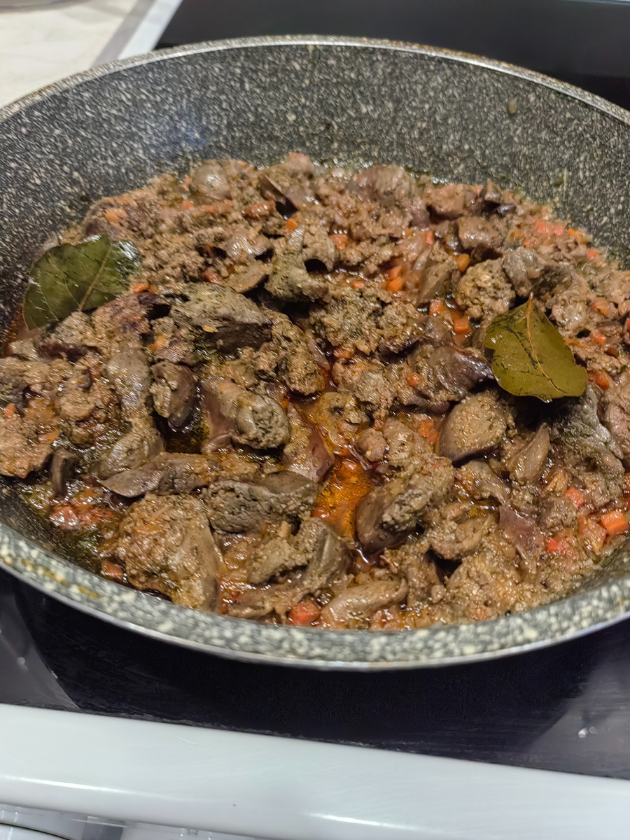 Печень куриная была у меня не в заморозке, потушила в соусе с приправами.