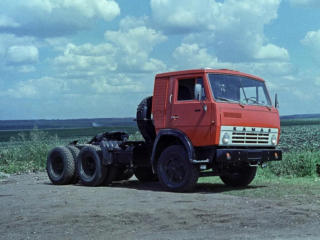 В годы СССР очень активно развивались грузоперевозки и для этого нужно было разрабатывать специальные грузовики, которые бы отвечали всем требованиям. За производство такой техники в стране на тот момент отвечало сразу несколько заводов и к 70-м годам основным из них стал Камский автомобильный завод или проще КамАЗ. На завод поступало задание на разработку того или иного грузовика и через какое-то время такая машина там была сделана. В 1976 году с конвейера завода сошел первый КамАЗ-5410, который был собран по бескапотной компоновке и принадлежал к классу седельных тягачей. Колесная формула грузовика 6х4, компоновка переднемоторная, заднеприводная. В длину машина 6200 мм, высоту 2850 мм и ширину 2700 мм, масса составляет 14.9 тонн. На модель установлен дизельный двигатель с 8 цилиндрами. Рабочий объем его составляет 10850 см3, мощность 210 л.с. В паре работает механическая трансмиссия, в кпп которой 10 передач, плюс установлен двухступенчатый делитель. Максимальная нагрузка на сцепное