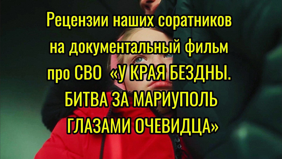 ПЕРВЫЙ ДОКУМЕНТАЛЬНЫЙ ФИЛЬМ ПРО СВО - «У КРАЯ БЕЗДНЫ. БИТВА ЗА МАРИУПОЛЬ ГЛАЗАМИ ОЧЕВИДЦА», КОТОРЫЙ ПОКАЖУТ НА ОТЕЧЕСТВЕННЫХ ОНЛАЙН-ПЛАТФОРМАХ Искренне поздравляем Максима Фадеева, Сергея Белоуса и всех тех, кто участвовал в создании данной картины состоящей из нескольких частей. Вы проделали огромную и очень важную работу, низкий Вам поклон. Тем, кто еще не смотрел, рекомендуем к просмотру. Более того, наши соратники по Русскому Движению Стрелкова одними из первых смогли увидеть вторую часть данной картины, и с их рецензиями мы хотим Вас познакомить: Координатор территориального объединения РДС/РДВС по Республике Татарстан: "Сложно подобрать слова к такому фильму, тем более красноречием не блещу! Просто это дополнительная возможность посмотреть глазами солдат на происходящее. Для тех кто не смотрит сводки по телевизору. А там все, что сопровождает любую войну…" Наш соратники из территориального объединения РДС/РДВС по Краснодарскому краю – Фрол Владимиров: Перед показом второго филь