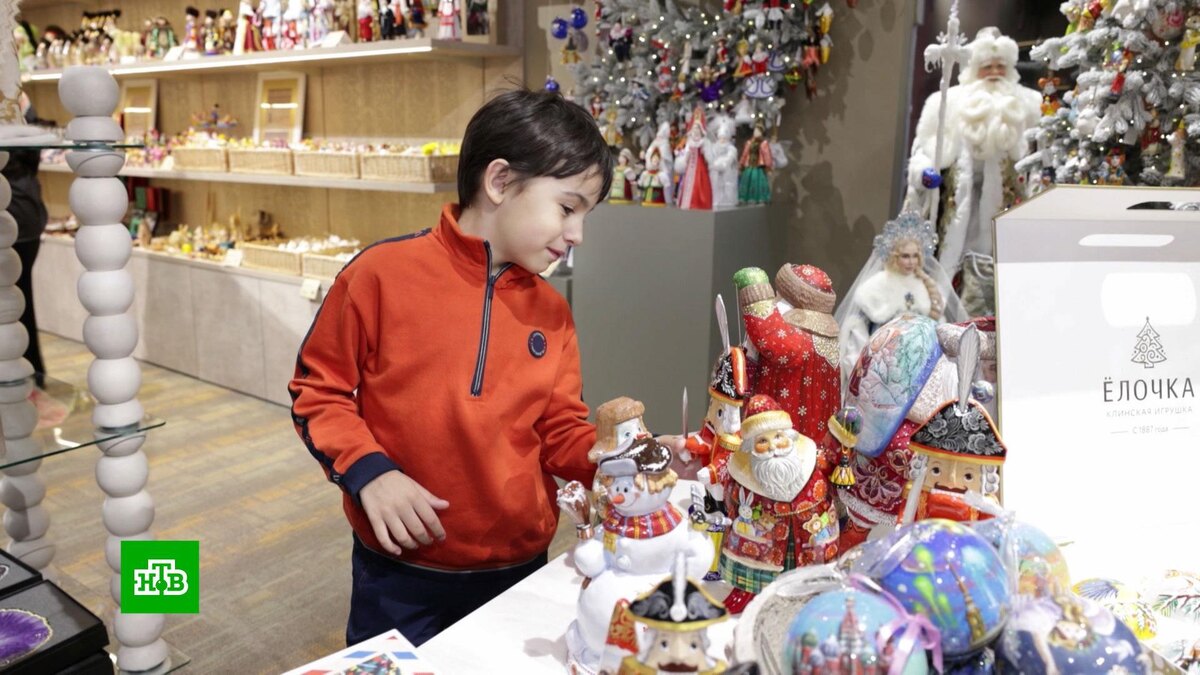 [ Смотреть видео на сайте НТВ ] Чуть больше месяца остается до Нового года. Об этом напоминают не только украшенные к празднику улицы Москвы, но и тематические ярмарки. Один из самых крупных новогодних базаров заработал в Национальном центре «Россия». Там можно найти все — от елочных игрушек и праздничного текстиля до подарков и сладостей ручной работы со всей страны. В Национальном центре «Россия» новогодний сезон начали с подарков. В специальном магазине «Универмаг» стартовал елочный базар. На прилавках появились фигурки, елочные игрушки и украшения со всех регионов России. Это уже даже не магазин, а настоящая выставка народных промыслов. Есть, например, целая экспозиция павлопосадских платков. Посетители могут узнать, в каком антураже и как обычно отмечают Новый год в разных уголках страны, и на время перенестись из дождливого ноября в атмосферу Нового года. Наталья Виртуозова, генеральный директор Национального центра «Россия»: «Ожидание праздника бывает дороже самого праздника. И