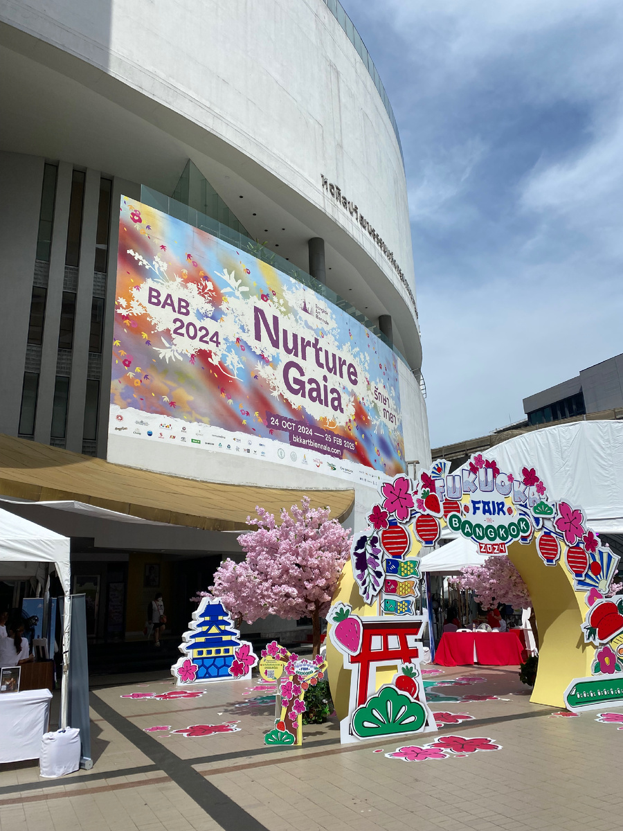 Признайтесь честно, вы бывали в Бангкоке, но вряд ли многие из вас посещали это место. Каюсь, грешен, я такой же. На этот раз, решил восполнить этот пробел, тем более, что текучка перестала заедать, времени в последнее время стало больше, снова стал писать маслом и поэтому интерес к искусству разгорелся с новой силой. Найти этот музей современного искусства Тайланда, а это именно он и есть в некотором смысле, довольно легко. Он расположен прямо у станции BTS National Stadium, метро MRT (синяя ветка). Доехав до станции, уточните у любого тайца где выход к центру, это зависит от того с какой стороны вы приехали. От станции пройти буквально 150-200 метров. И вы увидите вот это. В Бангкокском центре искусства и культуры всегда какая-то движуха, выливающаяся за пределы его стен на улицу. О его выставках и биенале вы подробнее сможете узнать на сайте центра https://www.bacc.or.th Что увидели мы В день нашего визита перед входом проходила ярмарка японской префектуры Фукуока. Поэтому