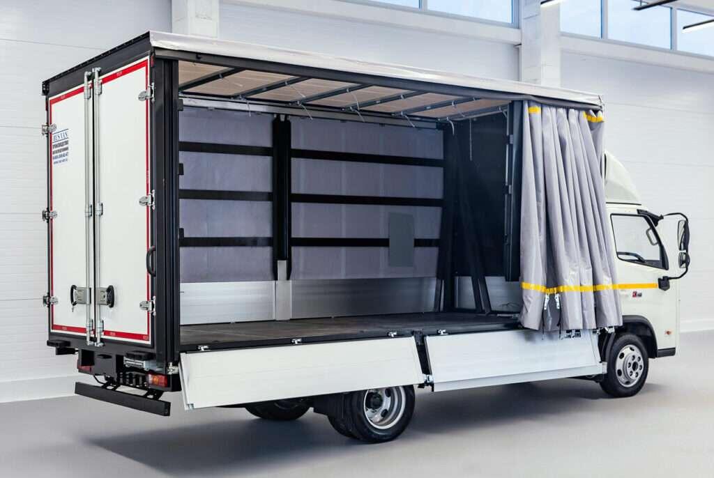 Компания «МБ РУС» объявила о начале продаж шторных фургонов на базе грузовых шасси Forland. В дилерских центрах компании «МБ РУС» уже можно заказать шторные фургоны на грузовых шасси Forland 3, Forland 8 и Forland 12. Вместимость фургона на базе шасси Forland 3 в зависимости от размера колесной базы и объема кузова составляет от 8 до 10 европалет, Forland 8 – от 12 до 14 европалет, а Forland 12 – от 18 до 20 европалет. Бортовую платформу со сдвижной шторой для этих фургонов выпускает отечественный кузовопроизводитель ООО «РУС ВЭН НН». Все автомобили адаптированы для эксплуатации в России и оснащаются дизельными двигателями экологического класса Евро-5. В шторных фургонах Forland сдвижной механизм позволяет собрать тент с обеих сторон в виде гармошки, смещая его в сторону кабины, средняя стойка смещается по направляющей, обеспечивая больше пространства для погрузки и крепежа.