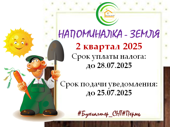 Напоминалка: земля - налоги, уведомления. 2 квартал 2025.