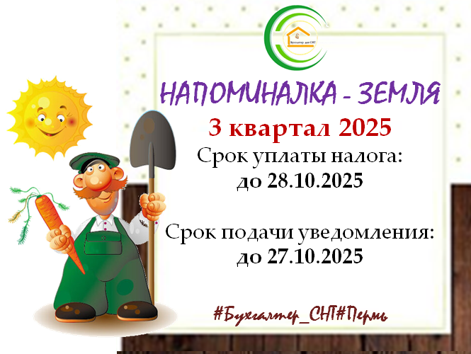 Напоминалка: земля - налоги, уведомления. 3 квартал 2025.
