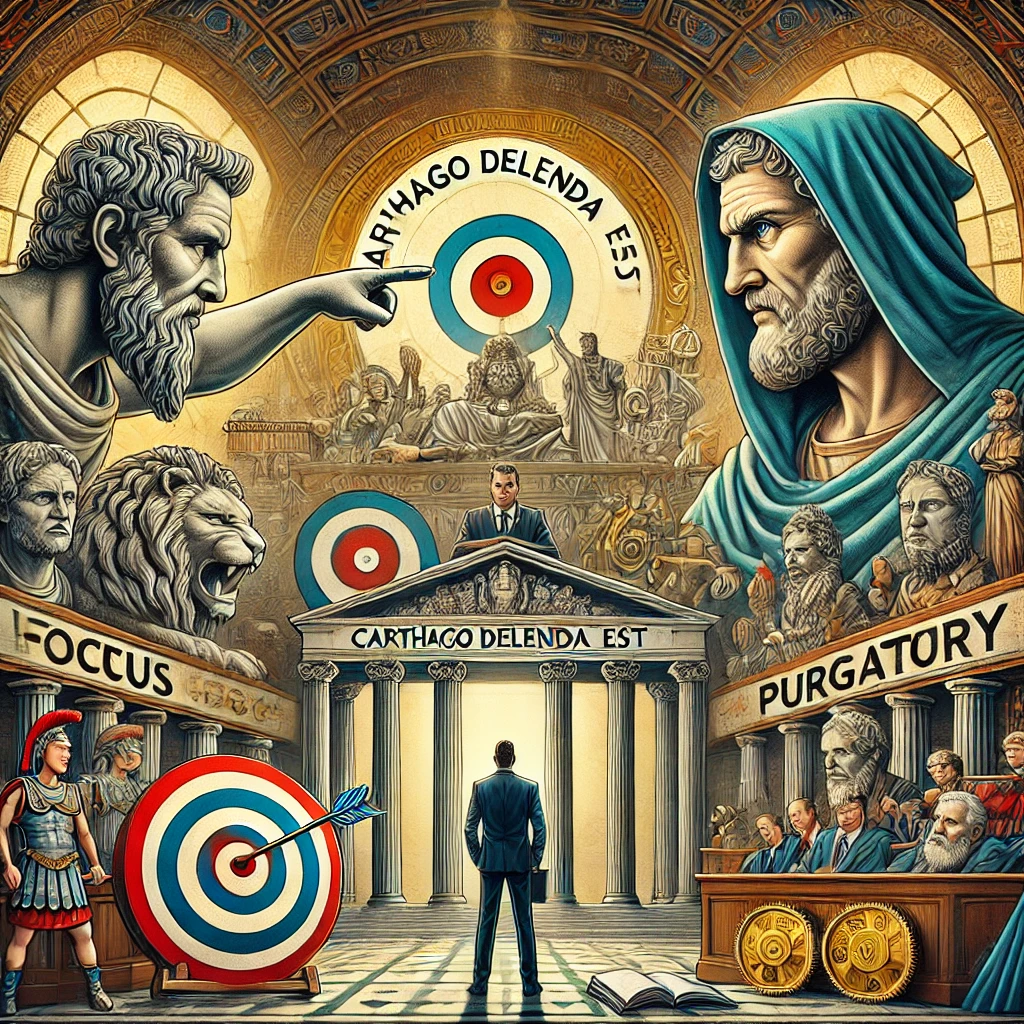 Как Катон Старший, вы должны напоминать о главной цели до её достижения. Постоянное повторение усиливает стратегическую настойчивость.