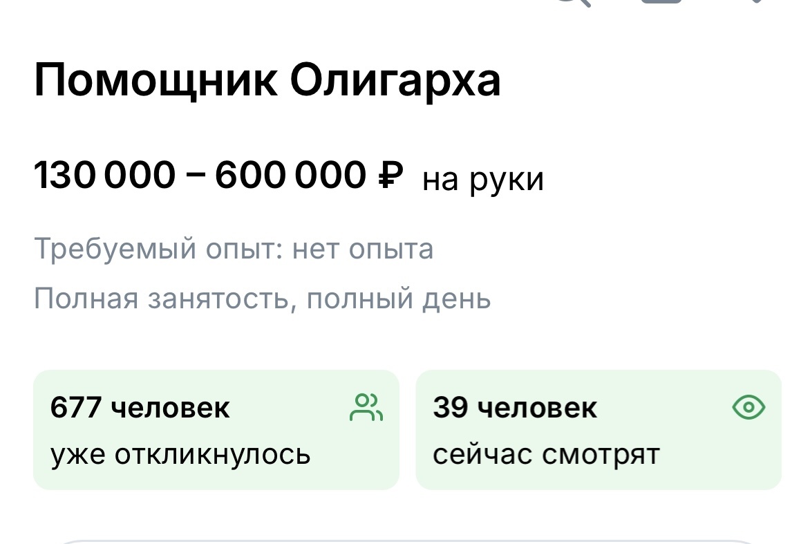 Я нет-нет, да и да, но посматриваю, что там интересненького происходит на рынке труда. Так сказать, люблю посмотреть, какие заоблачные суммы могут зарабатывать успешные люди. Представляю вашему вниманию необычные варианты, которые удалось найти на просторах всем известного сервиса по подбору персонала. Заскринила их специально для вас. Наслаждайтесь! Хотела бы я посмотреть на этих 677 человек, которые откликнулись, учитывая, что никаких особых условий для выбора кандидатов нет. Еще и пишут, что если вы без опыта, то не страшно! Везде же людям без опыта такие суммы предлагают, да? Кто ищет, тот всегда найдет! О, тут прям очень интересное описание вакансии. Что не характеристика будущего сотрудника, то шедевр. Просто листайте карусель и наслаждайтесь. Видно, что серьезная организация. Для любителей "Гарри Поттера" тоже вакансии имеются. Так что можете смело показать родителям и сказать, что вовсе не фигней вы какой-то занимаетесь, когда в 10 000 раз пересматриваете фильмы или перечитыва