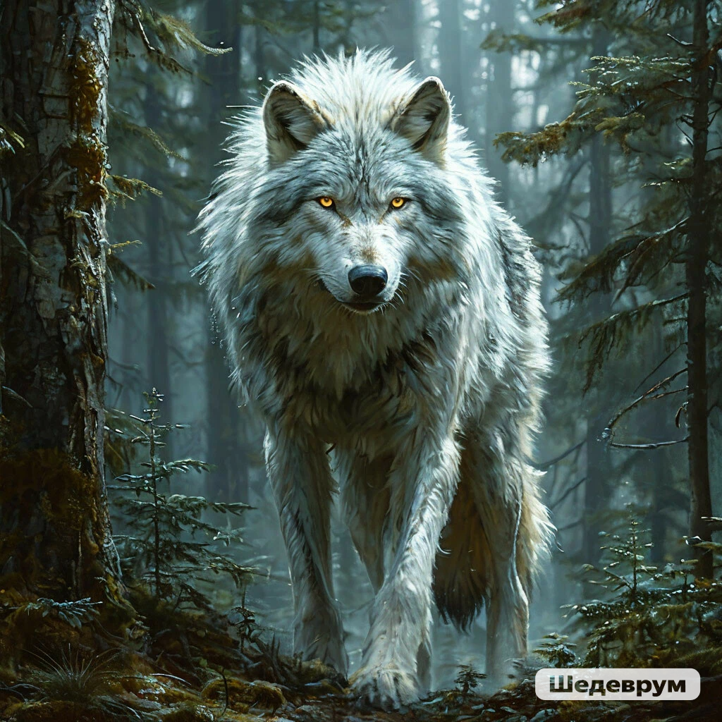 И тут его взгляд встретился с тяжелым взглядом желтых волчих глаз. Волк стоял и просто смотрел на Раэ. Издалека. Среди разреженных стволов елей… Стоял и просто пристально смотрел. У Раэ остановилось сердце. Оба альва на его плечах обмерли… От волка тянуло такой тяжелой мощью, что охотник понял: нет, ему от этого волка не уйти. И у Раэ начали медленно подгибаться колени. Силы оставляли его.