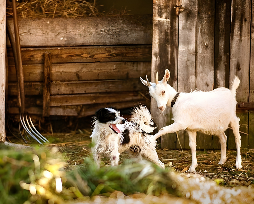 Хоть Дворовой и ухаживал иногда за животными, привязанности никому из них не испытывал, а дружеские отношения был способен поддерживать только с козлом и собакой. Факт этой дружбы говорит о «биполярочке» существа, ведь собака всегда являлась воплощением верности и добродушия, а вот образ козла имел негативную окраску. Добродушный Домовой так и вовсе козлов боится, даже присутствия их не выносит.