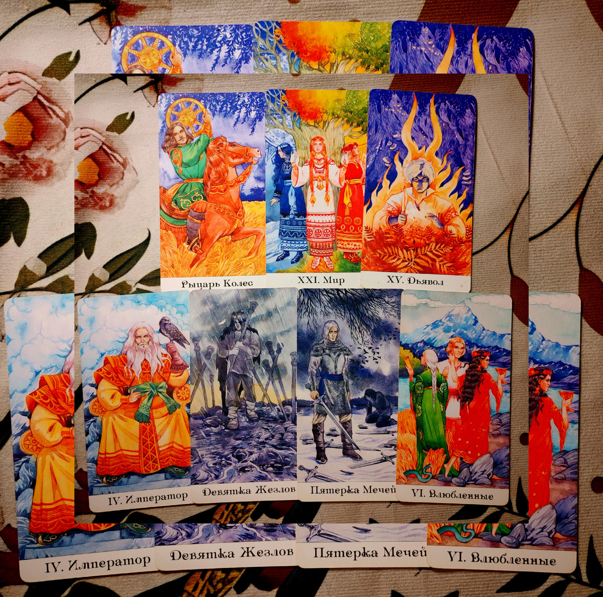 Сегодня я предлагаю к твоему прочтению один из самых пополурных моих раскладов на любовные отношения. Для схем, которые пользуются успехом, я стараюсь делать как можно больше разных вариантов раскладов, чтоб каждый смог найти именно свой. Для этого произнести вслух или "про себя" имя загаданного мужчины и главный вопрос расклада. Давай также вспомним, из каких запросов/вопросов состоит сам расклад. Теперь можно начинать читать карты. 1. Рыцарь пентаклей - он для тебя является чем-то стабильным и постоянным в твоей жизни. Даже где-то наверное он, в твоей голове, ориентир для тебя в плане успеха в жизни. Он умеет правильно спланировать свои действия, свою карьеру и вообще то, что важно для него в жизни. В общем, если все сложить вместе, он для тебя: успешный успех :) 2. 21 старший аркан Мир - вообще этот аркан говорит о том, что что-то заканчивается или уже закончилось. О жило свое. Поэтому скорее всего чувства уже давно прошли, остались только приятные воспоминания. 3. 15 старший