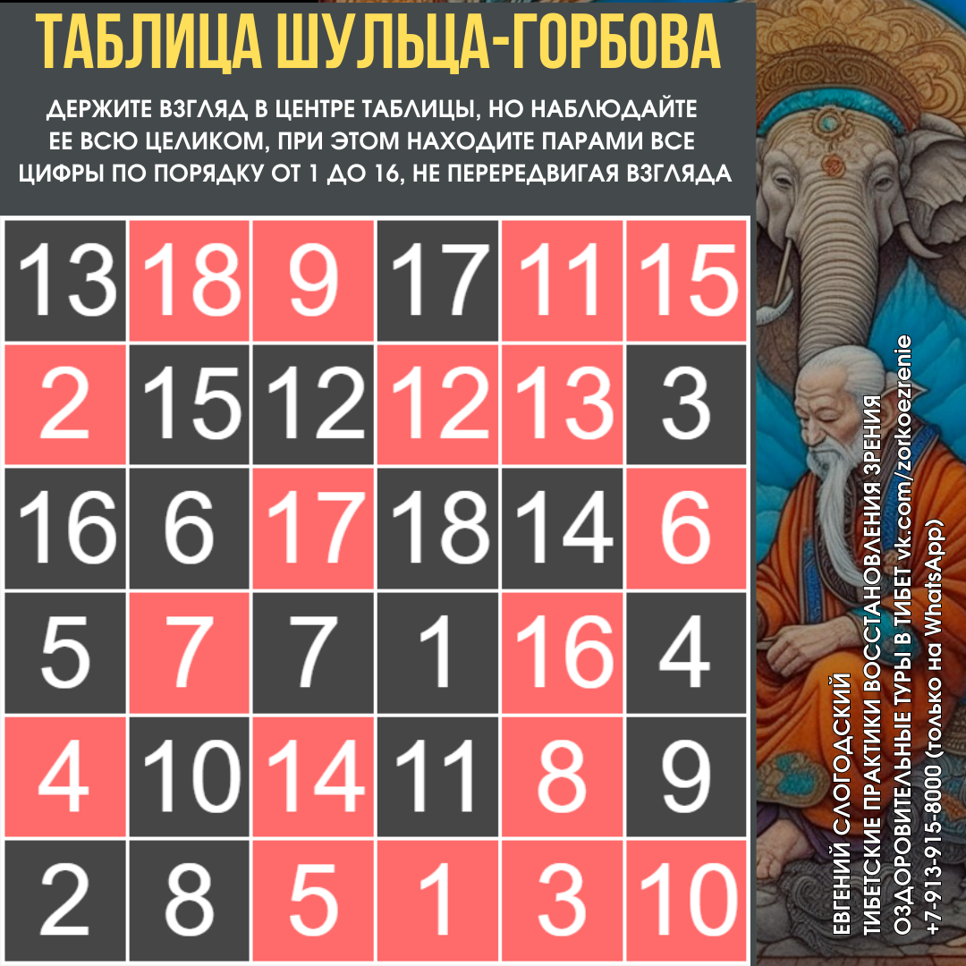 Это упражнение благотворно влияет на зрительную систему, повышает концентрацию внимания и активизирует поиск. Рекомендуется при различных глазных заболеваниях. Подробнее о универсальном тренажёре для глаз МНОТ Слогодского можно узнать здесь: