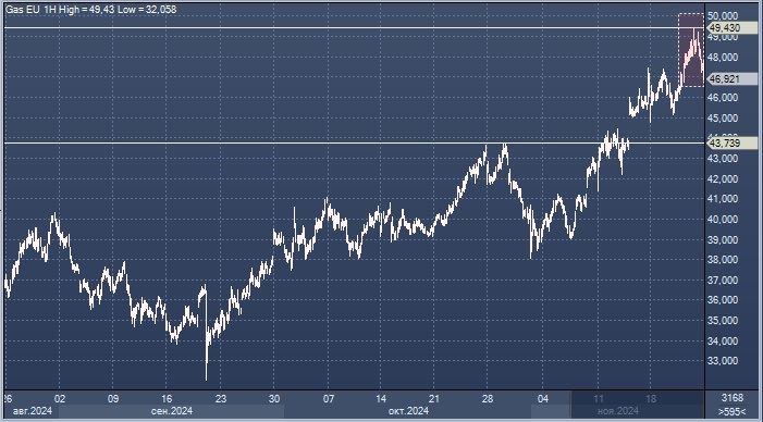 Тем не менее цены на газ в регионе растут 3 недели подряд, и котировки вблизи годового максимума. Цены на природный газ в Европе упали по итогам пятничных торгов, 22 ноября, поскольку трейдеры несколько успокоились после последних санкций США против Газпромбанка. Фьючерсы на индекс TTF (европейский бенчмарк) закрылись снижением на 2,7% после того, как ранее в пятницу впервые за год приблизились к отметке в 50 евро за мегаватт-час. Это примерно 533 доллара США за тысячу кубометров. Тем не менее газ в Европе дорожает третью неделю подряд на фоне растущих рисков для поставок и морозной погоды. В четверг США ввели санкции в отношении российского Газпромбанка, который обрабатывал платежи за газ от европейских клиентов. Однако Россия заявила, что найдет способы продолжать принимать платежи от иностранных покупателей своего природного газа, сообщил «Интерфакс» со ссылкой на пресс-секретаря Кремля Дмитрия Пескова. «Покупатели российского газа, которые пользуются услугами Газпромбанка, скорее в