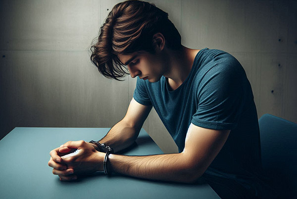 Невысокий, бледный, худой парень своей причёской напоминал Стивена. Голубая футболка, линялая джинсовая куртка. Сжав руки в наручниках в кулаки и положив их на стол, он сидел неподвижно и закрыв глаза, хотя брови его иногда вздрагивали, как будто он думал о чём-то неприятном или испытывал боль. Кулаки его тоже чуть подрагивали в напряжении. Потом он вообще сцепил руки, и костяшки его пальцев побелели, дыхание становилось чаще, и сам он еле заметно раскачивался, словно на него положили тяжёлый груз, и он пытался его держать.