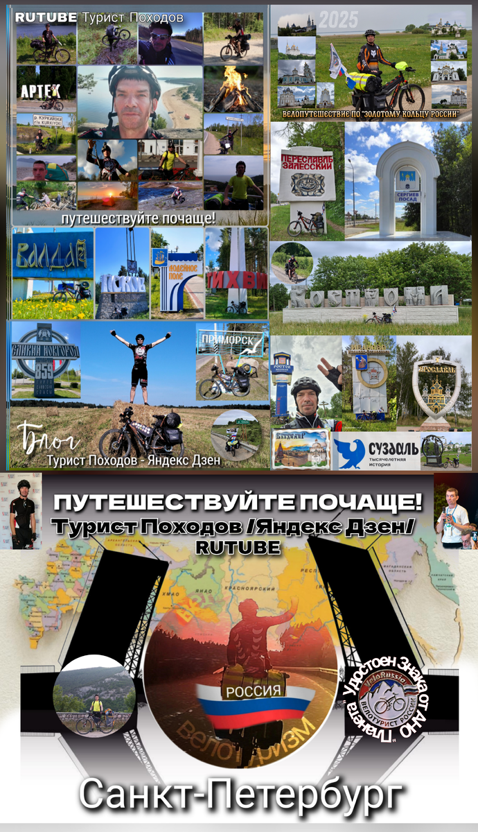 Увлекаюсь велотуризмом, (в основном качу сольно - 90℅) путешествую по ближним и дальним регионам России🇷🇺. Интересуюсь велотемой и всем что с ней связано. Организатор, Соорганизатор и Руководитель очень многих Велопроектов в Петербурге и Ленинградской Области. Веду свой небольшой блог путешествий. Благодарю за комментарии и оценки. Рад видеть единомышленников!