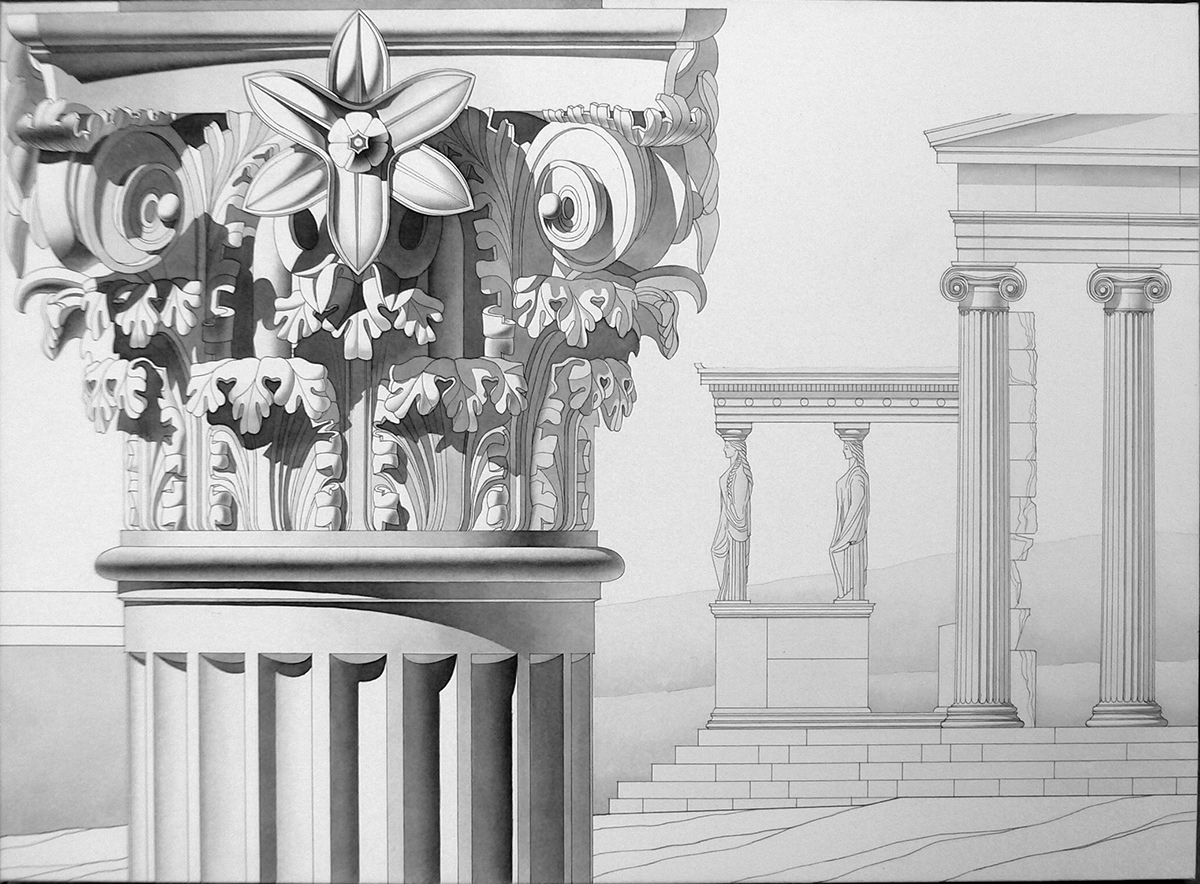 В Греции существовало пять основных ордеров классической архитектуры. Эти «ордера» — это типы колонн, но ордера — это определённые стили колонн, которые включают в себя основание и антаблемент, то есть то, что поддерживают колонны. Кроме того, «капители» — это верхушки колонн, и они являются неотъемлемой частью каждого из ордеров. Вот эти ордера: Дорический ордер имеет рифлёную структуру каменной колонны, тоньше в верхней части и не имеют настоящего основания. У них, как правило, простая капитель. Они намного толще, чем многие другие ордера. Ионический ордер, как правило, имеет более стройный общий вид и завершается капителью в виде завитков, которая представляет собой характерную спиралевидную структуру, встречающуюся в верхней части многих колонн. У этих колонн также есть основание. Коринфский ордер — это более тонкая колонна, которая очень похожа на ионический ордер, но имеет гораздо более богато украшенную капитель, которая обычно украшена орнаментом в виде листьев. Этот ордер, в