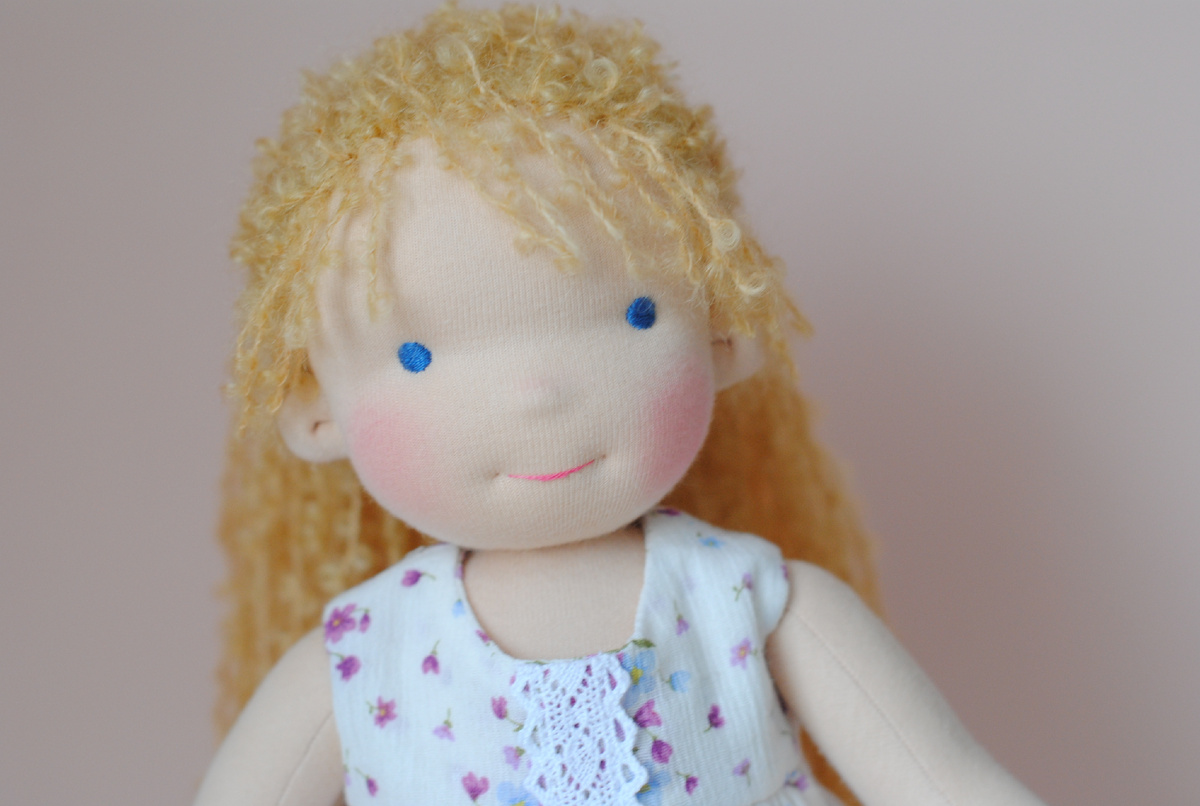 Сразу хочу сказать, что "по- быстрому" это не про вальдорфских кукол. Чтобы процесс радовал и работа была продуктивной, лучше всего действовать поэтапно. У нас есть дети, работа, домашние дела и иногда очень трудно выделить время на рукоделие. Но творчество это не только результат, но ещё и процесс, который помогает нам расслабиться и уделить время себе и своим интересам. Обычно, если не ограничена сроками, я шью куклу так: 1 день: Делаю заготовку головы куклы. 2 день: Делаю перетяжки и рельеф головы. Лучше всего это делать в один день, чтобы перетяжки не ослабились и сразу были зафиксированы. В этот же день выкраиваю и прошиваю трикотаж для обтяжки головы. 3 день: Обтягиваю голову трикотажем, делаю утяжки и вышиваю глаза и ротик. Важно это делать при дневном освещении, в крайнем случае под лампой. 4 день: Выкраиваю и прошиваю детали тела. Набиваю ручки. 5 день: Набиваю ножки и туловище и собираю куколку. 6 день: Пришиваю ручки, голову, ступни. Парик я обычно начинаю вязать сраз