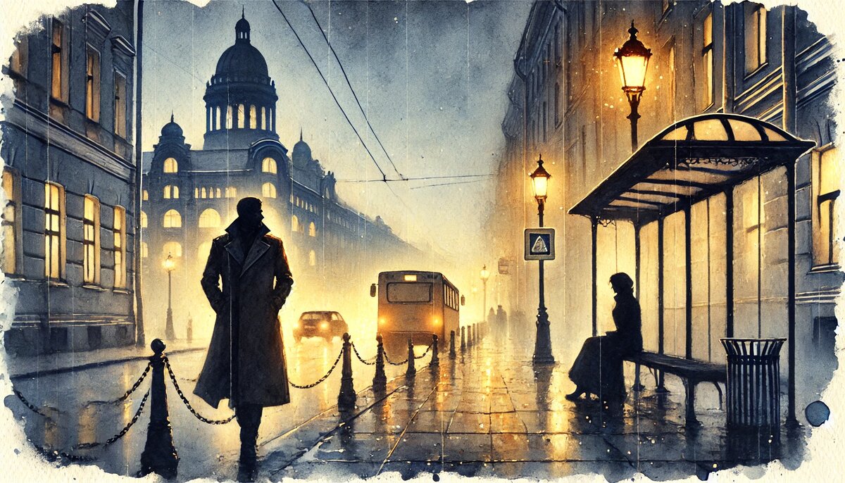 Шафрановый закат в Петербурге рассыпался по мостовым и рекам, окрасив все, до чего он мог коснуться, в оттенки охры и алого. Осенний свет, как пряный аромат восточных специй, постепенно раскрывался и смешивался с порывами ветра и хрустом листьев, принося с собой странные ощущения — уюта и одиночества одновременно. Местами сумрак уже сжимал узкие улочки, поглощая отблески последних солнечных лучей, цепляющихся за каменные стены домов. Как предвестник ночи и тайн, он укрывал подолом гигантской пелены, не только город, но и торопливых горожан, стремящихся, скорее оказаться дома, и не встречаться с непривычным после лета вечерним холодом. Но с этим уже познакомилась девушка, сидящая на пустой остановке. Она сжимала руки, в попытке согреться или хотя бы удержать остатки тепла. А ее платье, лёгкое и неуместное для этой погоды, трепетало под обнажающими взглядами ветра. Телефон разрядился, и город стал таким же глухим к её разочарованию, как и к досаде, вызванной забытым дома проводом. Где-то