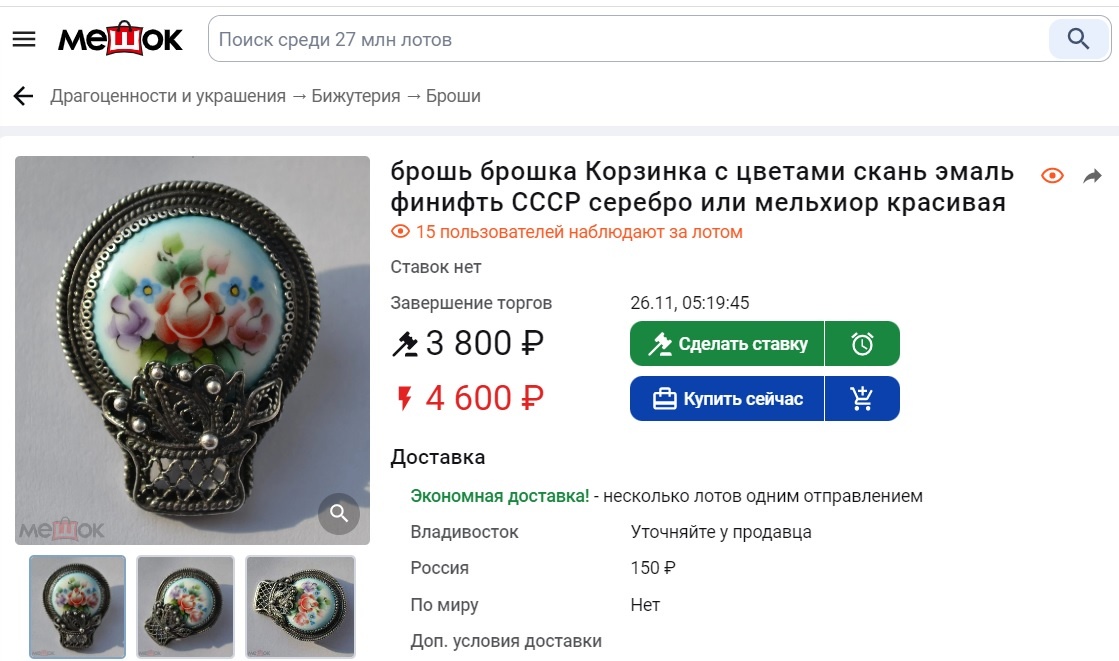 1. Как узнать, что украшение изготовлено из серебра? На продажу выставлена брошь, и продавец не знает, из какого материала она изготовлена. Посмотрим внимательно и поищем клейма. Ни на корпусе броши, ни на игле маркировок нет. Брошь не может быть изготовлена из серебра. Скорее всего, она изготовлена из мельхиора. Вот еще пример. Одна и та же модель броши концерна "Русские Самоцветы" была выполнена как из латуни, маркирована РС4М, так и из серебра. О материалах этих брошей так же рассказали их клейма. 2. Белое золото. Что это такое? Это платина? Нет, это не платина. В современных украшениях платиновый сплав встречается нечасто, вместо него используется белое золото. Однако, некоторые украшения изготавливаются из сплава 950 пробы, в состав которого кроме платины входят медь и иридий. Благодаря иридию увеличивается твердость сплава. Вот брошь, изготовленная из платины. Прилагается экспертное заключение о составе металла. Листайте карусель. Для изготовления украшений с бриллиантами широко