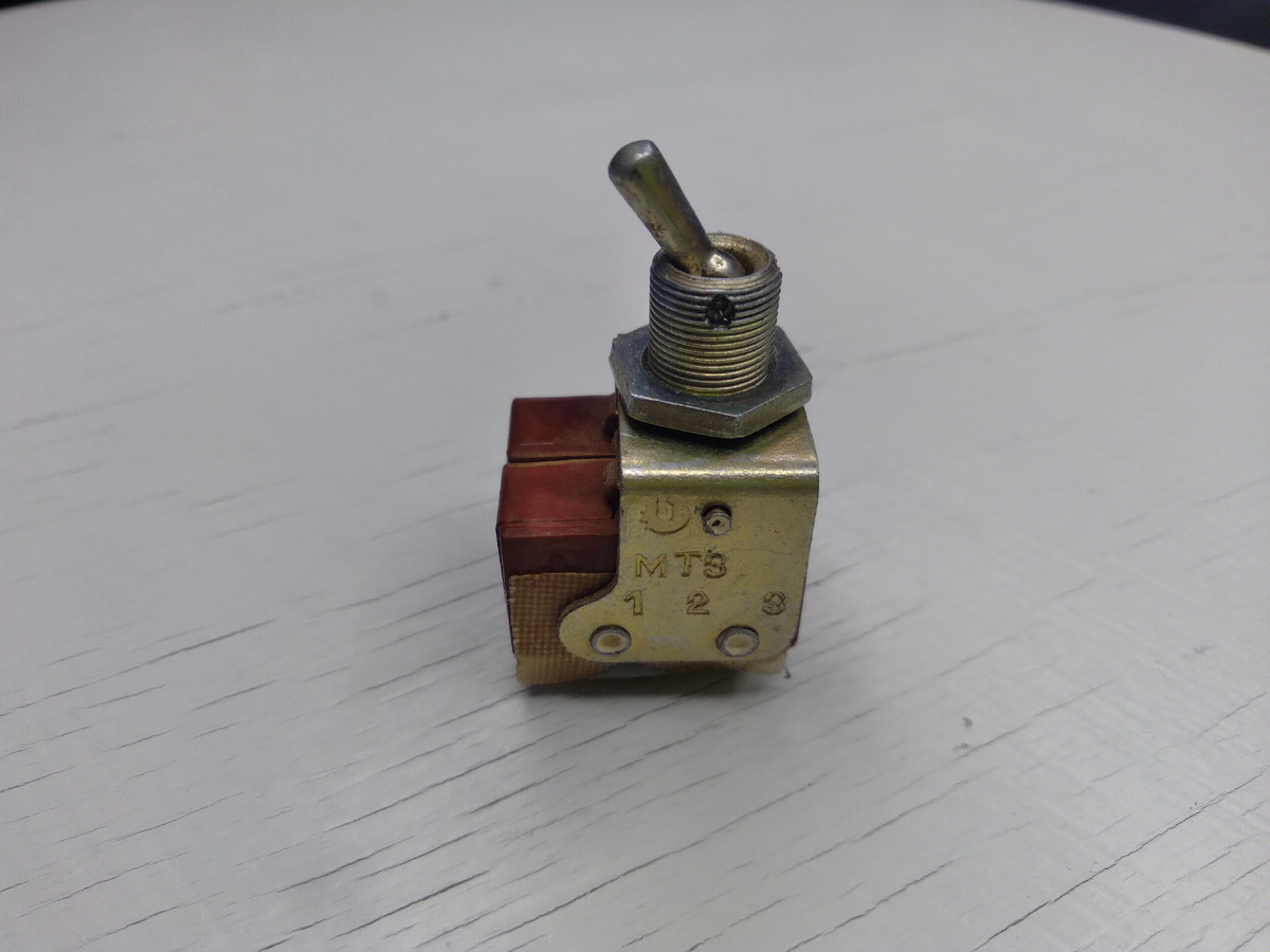 Всем привет читатели! Сегодня у нас на обзоре очередная интересная деталь - микротумблер МТ3. Данная деталь представляет из себя двухполюсной тумблер, предназначенный для коммутации электрических цепей напряжение до 250В с током до 4А. По своей сути данный тумблер представляет из себя два тумблера МТ1, объединенных в одном корпусе. Так что разбирая тумблер МТ3, мы по своей сути, также познакомимся с конструкцией тумблера МТ1. Внешний вид микротумблера МТ3 Маркировка данной детали расшифровывается следующим образом: МТ - микротумблер; 3- двухполюсной (В МТ1, 1 - означает однополюсной). Нумерация выводов тумблера МТ3 Данный тумблер имеет три вывода. Нумерация данных выводов нанесена на корпус данного изделия: Схема работы тумблера МТ3 Данный тумблер одновременно коммутирует две электрические цепи. В одном положении тумблера у нас будет замкнута электрическая цепь 1 - 3, в другом положении цепь 1 - 2. Резьба и гайка в верхней части тумблера МТ3 В верхней части тумблера имеется резьба с га